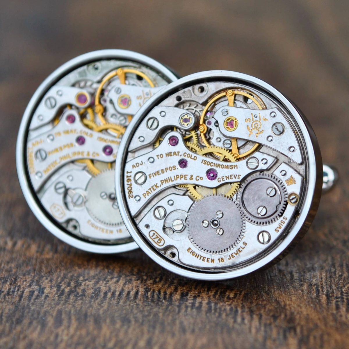 The prestige of Patek Philippe watches is simply unrivalled. George Fox Cufflinks skillfully handcrafts the finest Patek Philippe watch mechanisms into opulent Patek Philippe Cufflinks. These 175 Calibre (.175 Cal) Patek Philippe watch movements boast incredible detail, each time they are viewed a new detail is noticed. These Patek Philippe Cufflinks are a true gift of luxury for those who are hard to buy for, for those that have a Patek Philippe watch and want to add to their collection, or simply for those who appreciate the iconic brand.